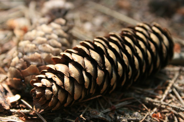 Auch Fichtenzapfen sind verholzte Blüten. Jede einzelne Schuppe war eine weibliche Blüte. In der Reife haben sie ungeschütze Samenanlagen, weshalb sie Nacktsamer genannt werden. Die männlichen Blüten bestehen aus vielen gelbblühenden Staubblättern, die im Mai Ihren Pollen auf die Zapfen abwerfen. |