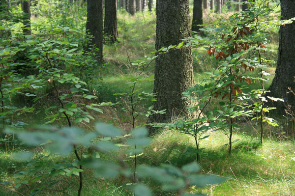 Eine Aufforstung von Buchen. Da der Wald vor allem wirtschaftlich genutzt wird, müssen Bäume nachgepflanzt werden. Seit über 150 Jahren gibt es in Mitteleuropa das Prinzip der Nachhaltigkeit.
